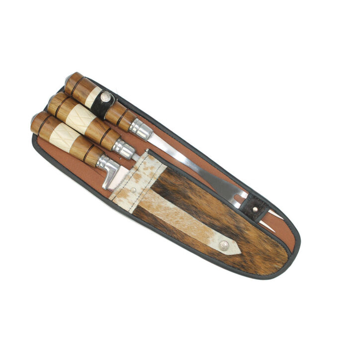 Conjunto de Faca Garfo e Chaira 10“ Cabo de Osso e Madeira